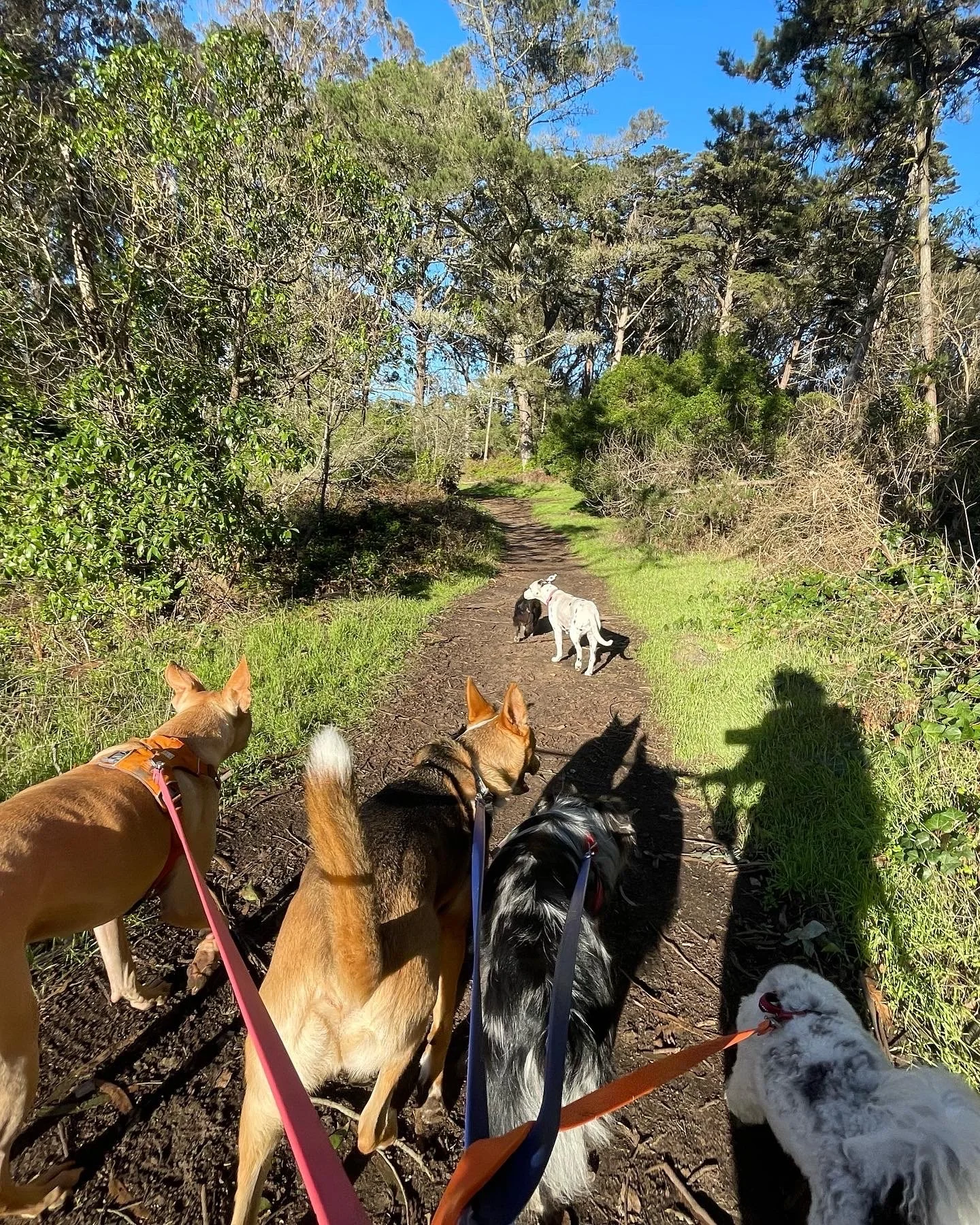 We offer small group leashed adventure hikes to the best local parks. We provide pick up and drop off of your dog (within our service area), waste disposal, high quality treats, water and a comfy spot to lay after 1.5 - 2 hours of high cardiovascular exercise on the local trails. Dogs will be out of the house anywhere from 2.5 - 5 hours depending on the day. Hikes are offered Monday - Friday.